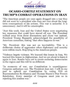 Ο πόλεμος ξεκίνησε χωρίς έγκριση από το Κογκρέσο, παραβιάζοντας το αμερικάνικο Σύνταγμα και με την πλειοψηφία των αμερικανών να είναι αντίθετοι. Ο Τραμπ που βγήκε με συνθημα την απόσυρση των ΗΠΑ από πολέμους και το σταμάτημα των πολέμων στην Ουκρανία και στη Γάζα, τώρα – αντιθέτως- ξεκινάει μια νέα πολεμική επιχείρηση που εμπλέκει δεκάδες χώρες στον πόλεμο. Μάλιστα εξανάγκασε εταιρίες Τεχνητής Νοημοσύνης να συνεργαστούν με το στρατό, παρόλο ότι το ΔΣ μιας από αυτές Anthropic εξέφρασε την αντίθεσή του σε μια τετοια συνεργασία.