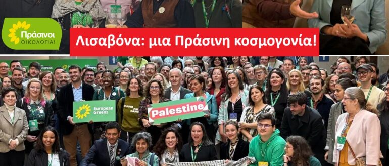Οι ΠΡΑΣΙΝΟΙ -Οικολογία στη Λισαβόνα Γεμάτοι αισιοδοξία για την Πράσινη προοπτική και με εμπιστοσύνη στις δυνάμεις που συσπειρώνονται στην οικογένεια των Ευρωπαίων Πράσινων γυρίζουν από τη Λισαβόνα οι Έλληνες αντιπρόσωποι των ΠΡΑΣΙΝΩΝ -Οικολογία. Σε αυτήν συμμετείχαν ο συμπρόεδρος του κόμματος Κώστας Παπακωνσταντίνου και ο συντονιστής της ΠΓ Μιχάλης Τρεμόπουλος, που καταγράφουν τα εξής: «Στο συνέδριο…