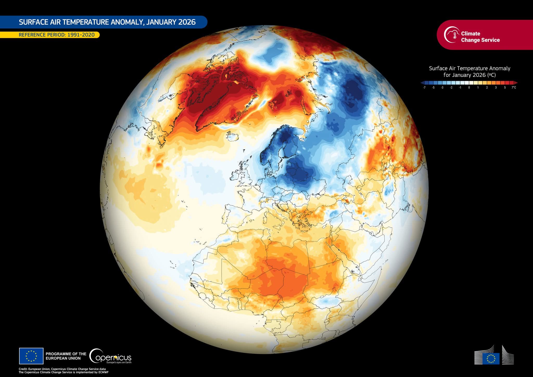 Η Υπηρεσία Κλιματικής Αλλαγής του Copernicus (C3S) δημοσίευσε το τελευταίο μηνιαίο Δελτίο Κλίματος, εστιάζοντας στις βασικές τάσεις του κλίματος τον Ιανουάριο του 2026.