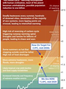 Η άνοδος της μέσης θερμοκρασίας ξεπερνάει τα πιο απαισιόδοξα σενάρια που έτρεχαν με μοντέλα οι επιστήμονες, όπως φαίνεται και από το σχετικό διάγραμμα. Η ταχύτητα αλλαγής του κλίματος είναι πολλαπλάσια της αλλαγής του την περίοδο των παγετώνων.