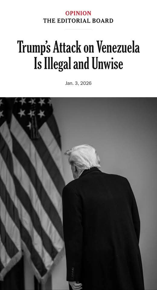Λίγο αφότου ο Τραμπ είπε χθες στους δημοσιογράφους ότι η πρώην αντιπρόεδρος της Βενεζουέλας και νυν πρόεδρος, Ντέλσι Ροντρίγκες, είναι «ουσιαστικά πρόθυμη να κάνει ό,τι θεωρούμε απαραίτητο για να ξαναγίνει μεγάλη η Βενεζουέλα», η Ροντρίγκες απαίτησε την επιστροφή του Μαδούρο και δήλωσε ότι η Βενεζουέλα «δεν θα γίνει ποτέ ξανά αποικία καμίας αυτοκρατορίας, όποια κι αν είναι η φύση της». Πράγματι, η αμερικανική απομάκρυνση του Μαδούρο και οι απειλές να «διοικήσουν» τη Βενεζουέλα είναι πιθανότερο να ενισχύσουν την κυβέρνηση Μαδούρο παρά να την αποδυναμώσουν.